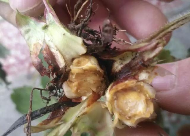 ) ~5 i& p) R/ e/ z7 f3 Z 黑根腐病:表皮和木质部分离,维管束变褐,须根发黑腐烂。 2 Z, z$ t9 U* [4 h2 ]