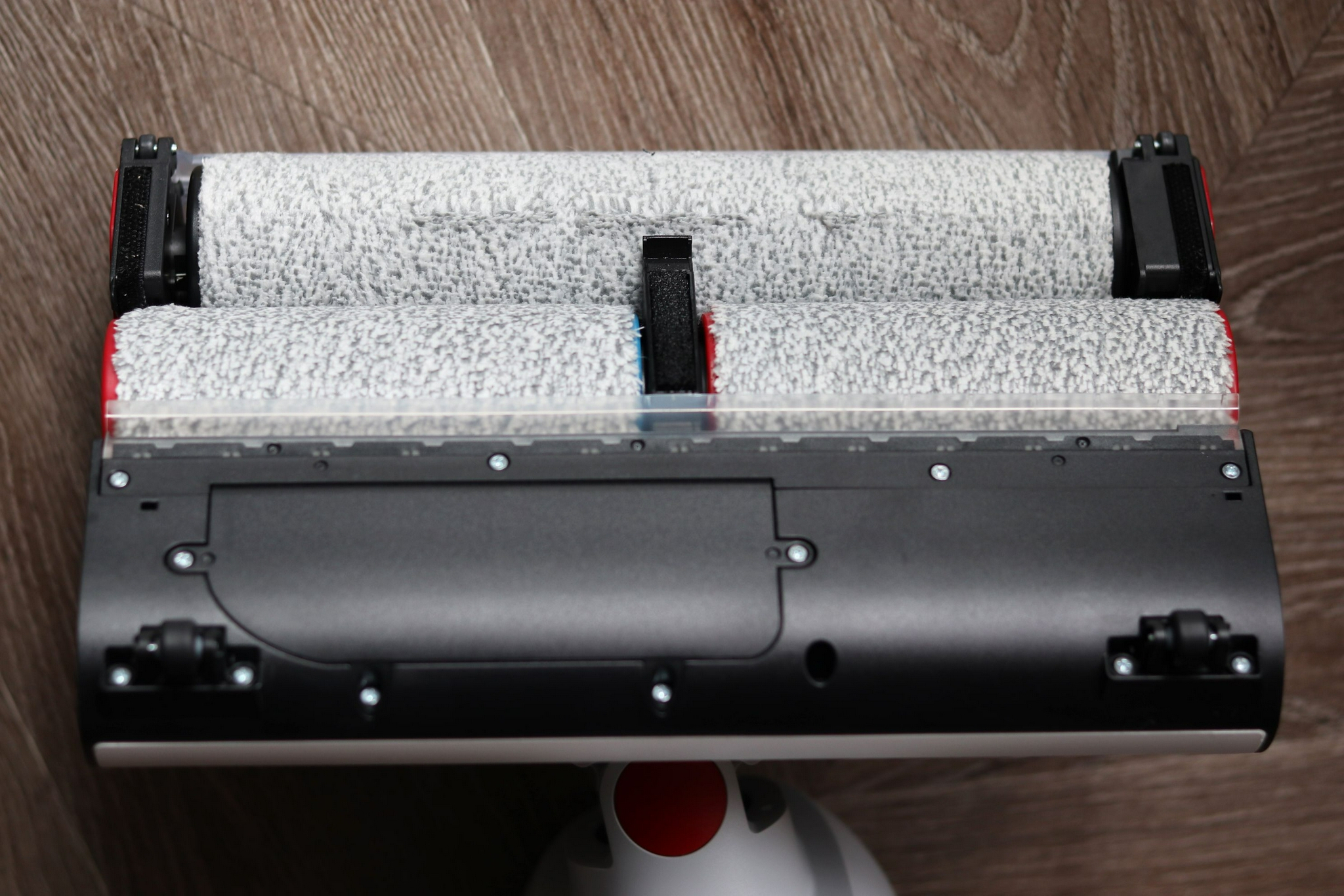 ( ~3 O# M3 `* o: H$ | 但我认为最大的好处还是在清洁完成后,能最大限度将最后那点残留物带走,避免单滚刷总会甩出一点污渍的问题。经过多次反复测试,确实没看到啥残留物滴到地上。 8 T" x( O+ L( ]1 q& M ^# U2 @