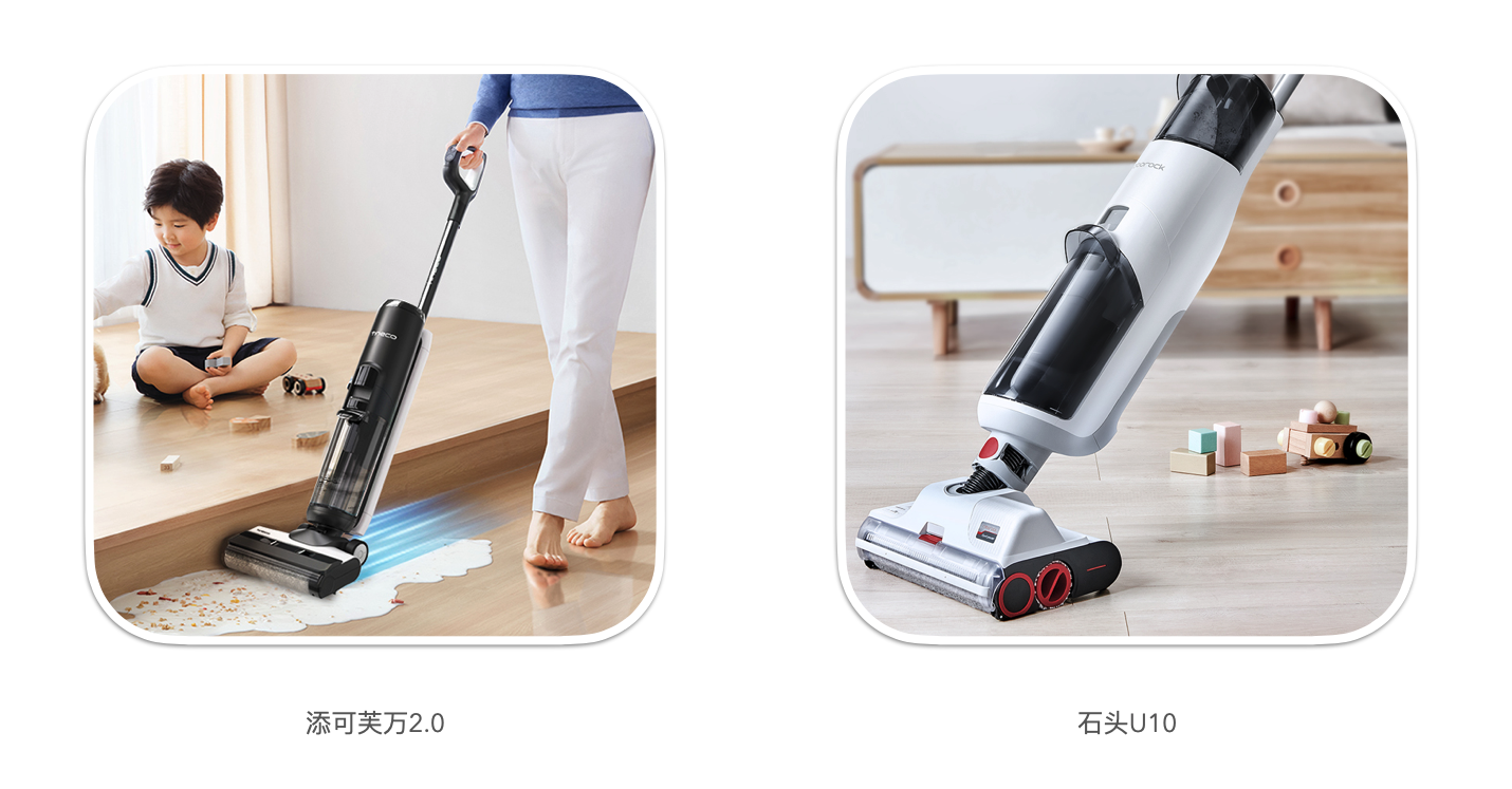 $ `4 ~4 E1 q3 y, m 就在今年,洗地机品类有了一些新变化,比如年初发布的添可芙万 2.0,以及近期上市的石头 U10 等。