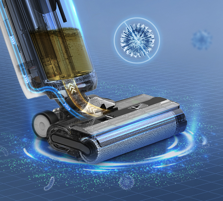以往,我们清洁地板的顺序是扫帚扫走灰尘杂质,湿润拖把拖地,拖地过程中不断清洗拖布,这里面存在两个痛点:一是从扫帚到拖把需要更换设备,另一个是清洗拖布的频率会影响地面清洁效果。