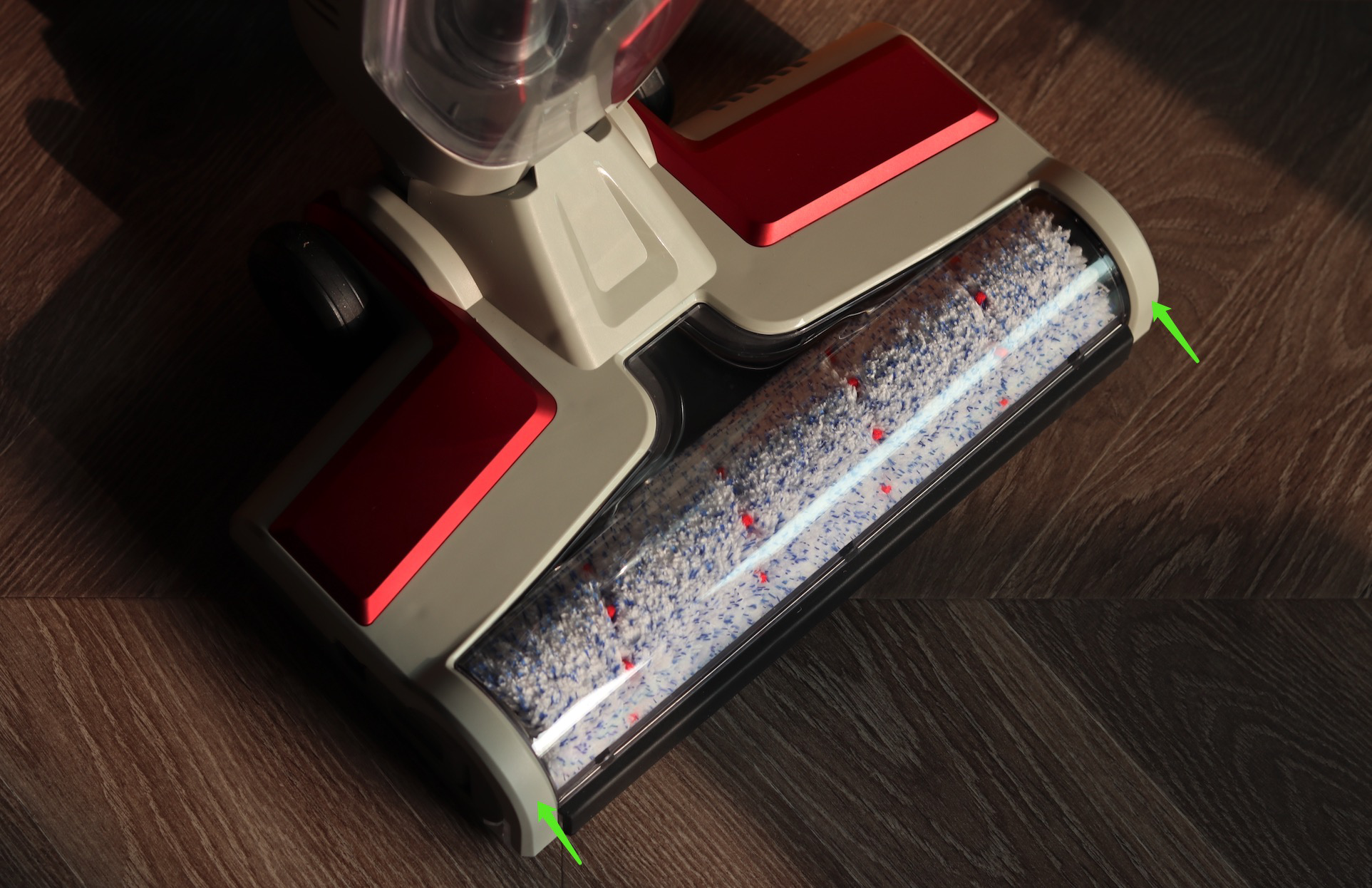 在设计上,这两款洗地机至少让我看到了前面提到的两个缺陷都得到了改善,比如添可芙万2.0的贴边地刷设计,最大程度避免墙边清扫盲区的问题。 4 Q( z3 v: l4 W7 I$ D