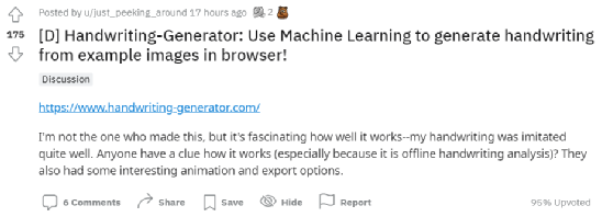 # V8 x4 `/ S; s% _# `) t https://www.reddit.com/r/MachineLearning/comments/nwb7ed/d_handwritinggenerator_use_machine_learning_to/