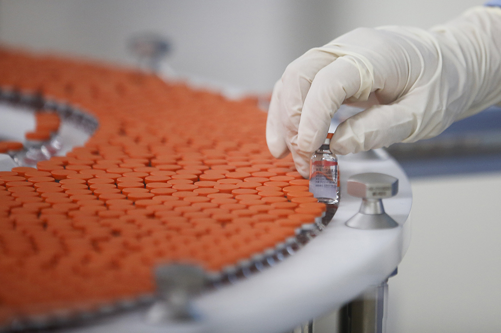 2021年6月1日,北京科兴中维生物技术有限公司的疫苗包装生产线。视觉中国 图