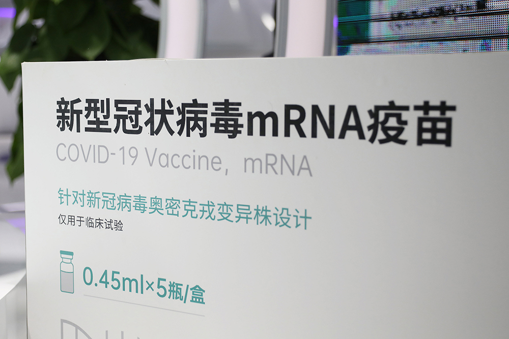 2022年8月29日,北京,中国国际服务贸易交易会上,国药集团新型冠状病毒mRNA疫苗。视觉中国 图 * |9 `2 j3 p1 O: j: |; c2 m