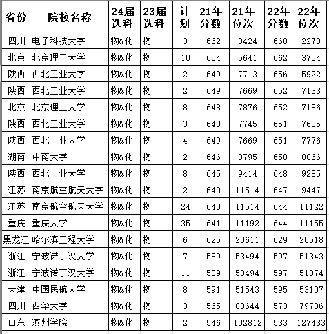 . ?2 m' z8 q" V! D" C% r3 {, M. E 航空航天(工程)类专业近两年在浙江招生选科/分数/位次: