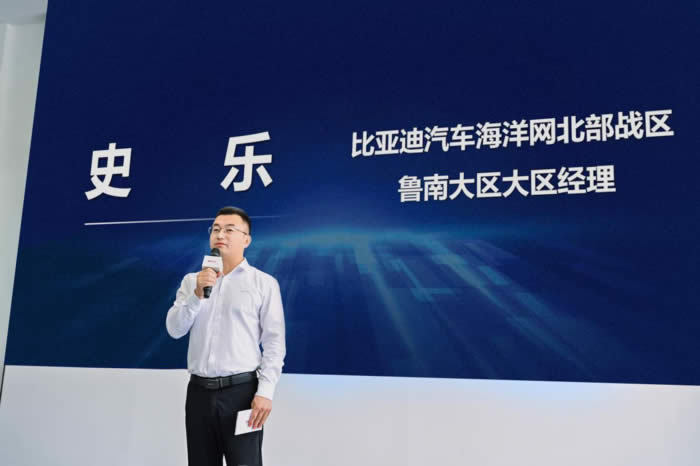 ) \ |1 c- ~6 N" X5 [: Y6 p+ M1 O2 y; e 奋楫笃行逐浪新境,活动当天,比亚迪汽车海洋网北部战区鲁南大区大区经理史乐先生登台致辞,在欢迎各位媒体嘉宾到来的同时,向大家分享了比亚迪海洋网在新能源汽车领域的美好展望和傲人成绩。