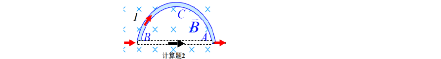 2.如图,一通有电流 I 的半圆形导线BCA ,放在磁感强度为B v3 C: a! v3 a5 d1 r' E& o
