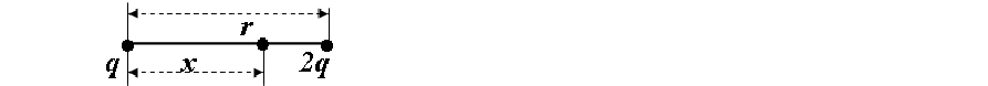 7. 两个相距为r 的正点电荷q 和2q 。求在它们激发的电场中电场强度等于零的点的位置。