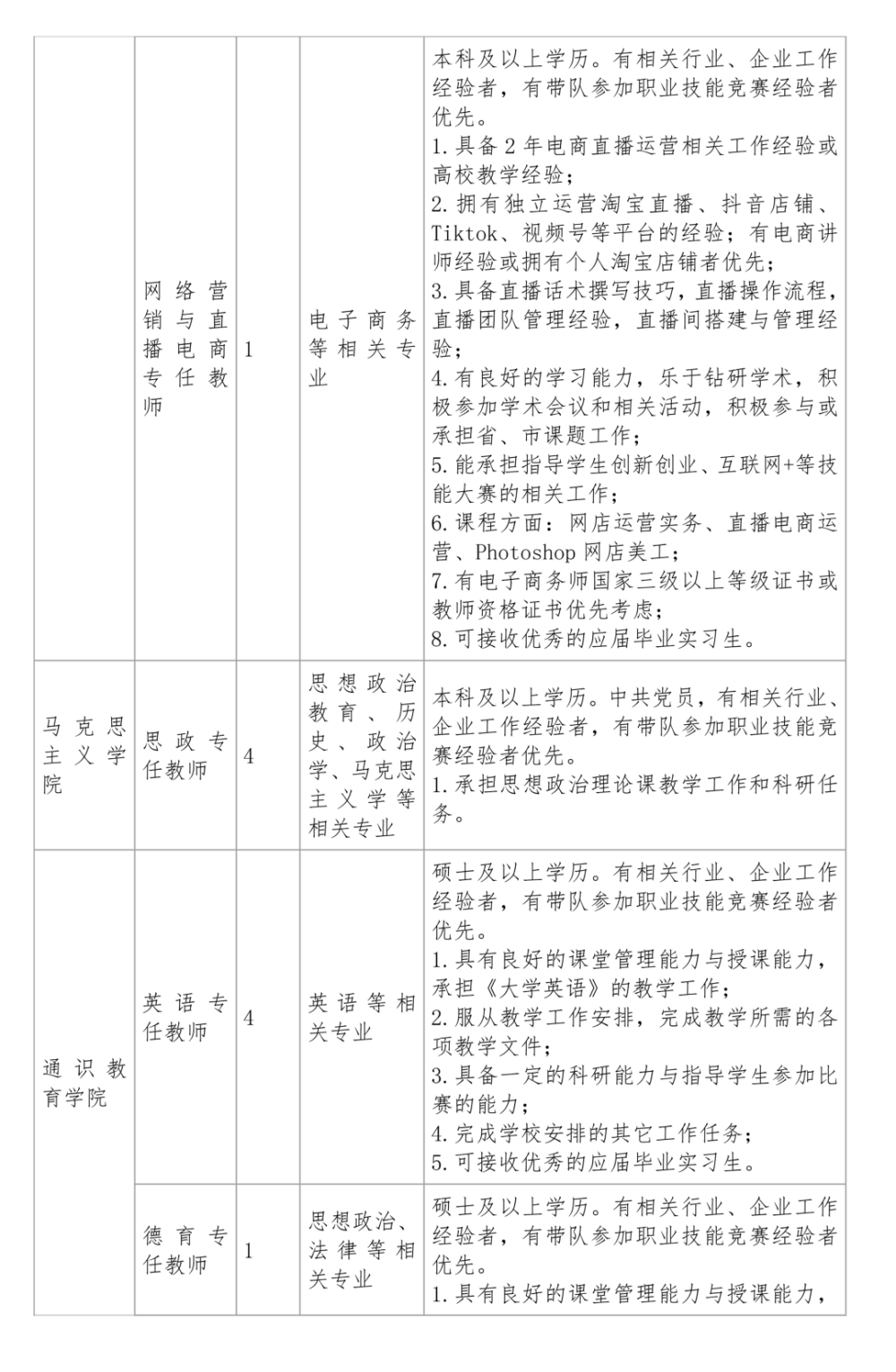 3、具有相关的专业背景或从业经验,良好的学术道德和团队协作精神,对本专业建设和发展具有创新性构想。