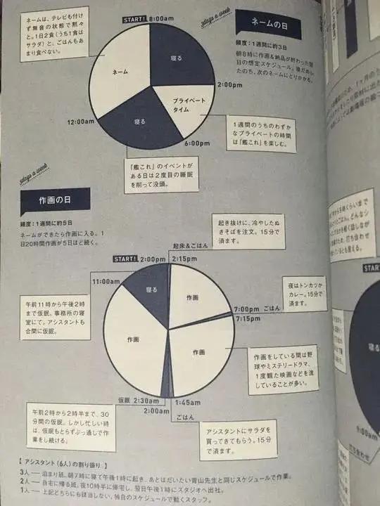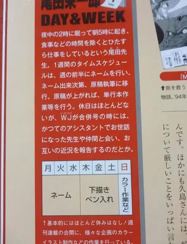 尾田是行业里的标杆人物,他的工作时间跟青山比较相似,也是分为两个阶段,先用3天画草稿,然后再3天画原稿,但他不是夜间作画。草稿会比较轻松点,原稿的话那就要2点睡觉5点起床,一天也是20小时以上的高压工作。他很少休刊,也不知道这么多年是怎么撑过来的。 9 S4 _. y i1 ~! F* u2 s1 K