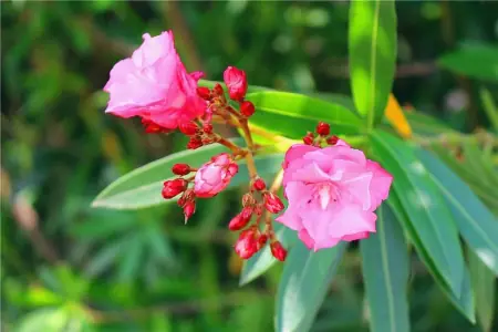夹竹桃是喜阳植物,在室内养夹竹桃并不是一个好主意,没有充足的光线,夹竹桃很快就会凋谢枯萎,采摘回来也留不住!而且夹竹桃分泌的乳白色液体,人接触到这种液体时间一长,会使人昏昏欲睡! # R0 }$ P# T) j7 z' a, e: K