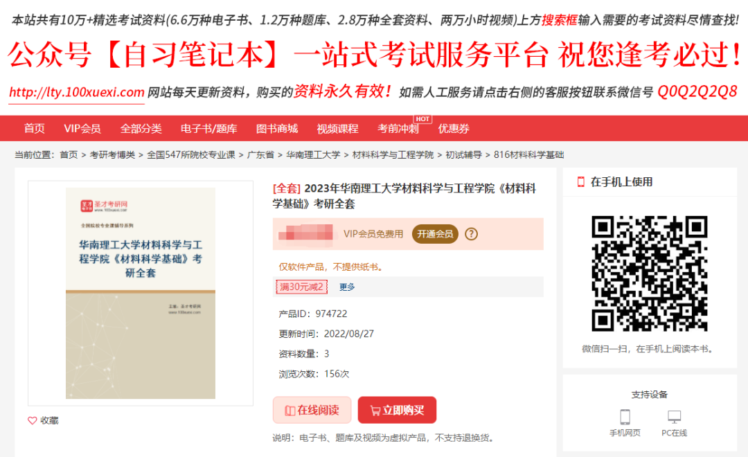 [全套]2023年华南理工大学材料科学与工程学院《材料科学基础》考研全套 长按下方二维码即可% Q, H, E( M' Y* A( `% \/ _
