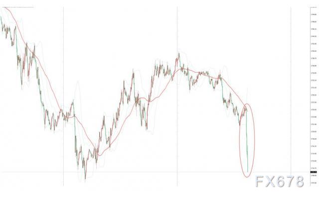 图:现货金价5分钟图显示 + S- f! v) w4 u7 D& \- h! N