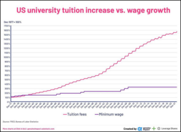 - V) p6 w4 A1 b$ b' B: v7 T# i# y$ O& G 1977-2011年美国大学学费上涨的幅度远远超过美国人薪水上涨的幅度。