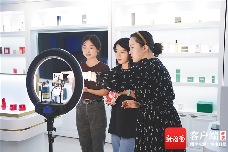 9 n# u& @, j4 r A0 a 海南经贸职业技术学院学生在上直播运营课。学校供图
