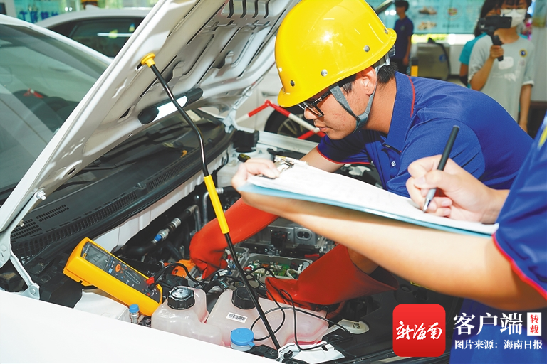 . d9 r# Z5 d0 w5 F# p% m/ N: m# B “我有个亲戚从事汽车修理工作,小时候常常去看他修车。后来,我对汽车的构造和功能产生了浓厚兴趣,入校后开始系统学习汽车应用与维修技术知识。”韩林告诉海南日报记者。2020年6月,他通过面试选拔,进入学校新能源汽车竞赛团队。从去年11月起,韩林和陈成森开始备战全国职业院校技能大赛。 ! V. F5 V! ~, A5 t$ l$ W