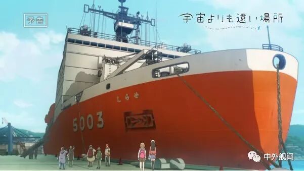 2 Z0 E4 u0 a3 U0 v+ F. P* q e( e 动画中这艘令少女们心驰神往,舷号5003的梦想之船,就是日本唯一的大型南极观测船“白濑”号(しらせJMSDF AGB5003)(二代)。