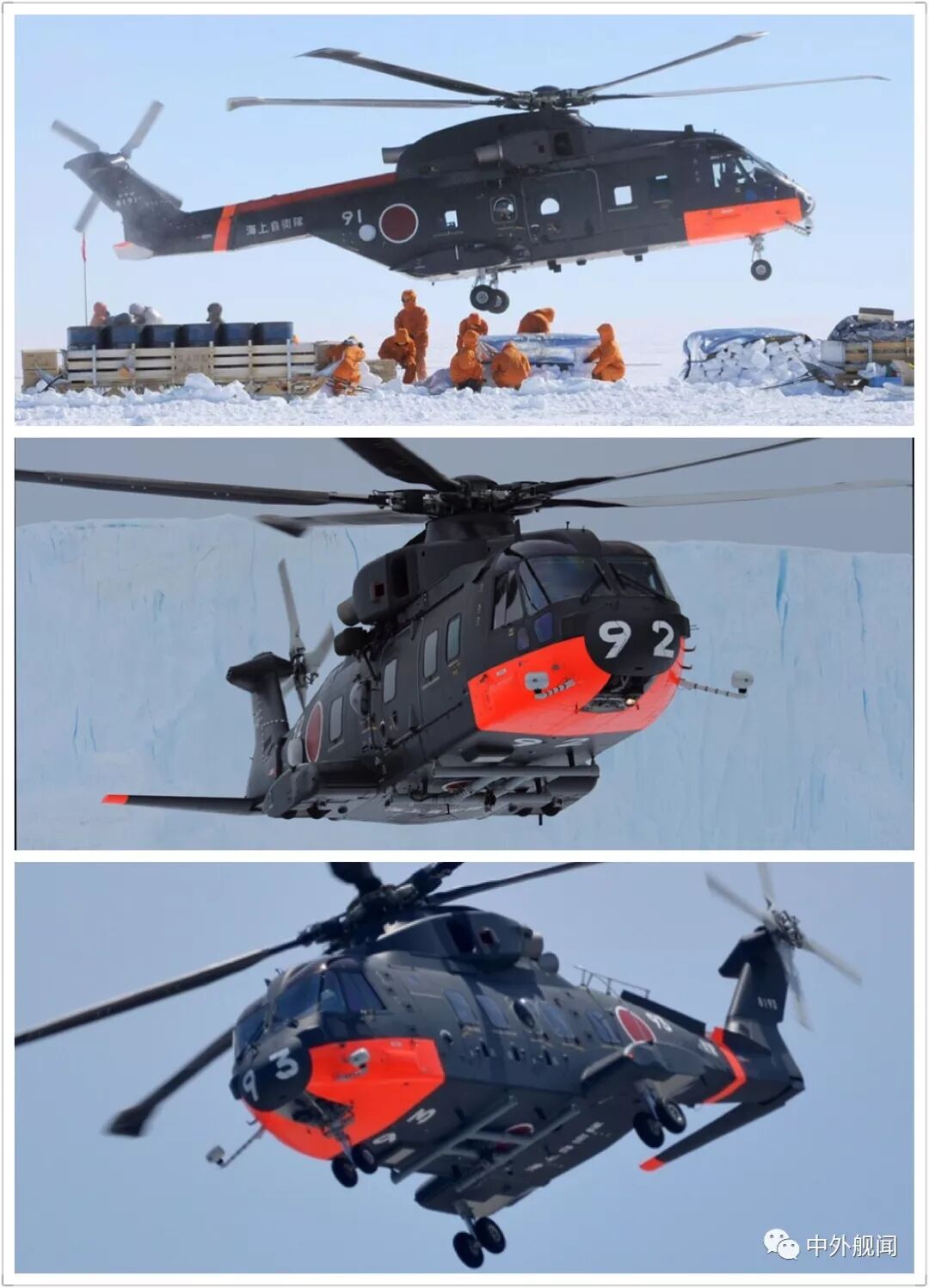 海上自卫队所属的三架科考专用型CH-101运输直升机,注意她们机首的可伸缩后视镜 $ J" a2 p4 M2 t5 }* {