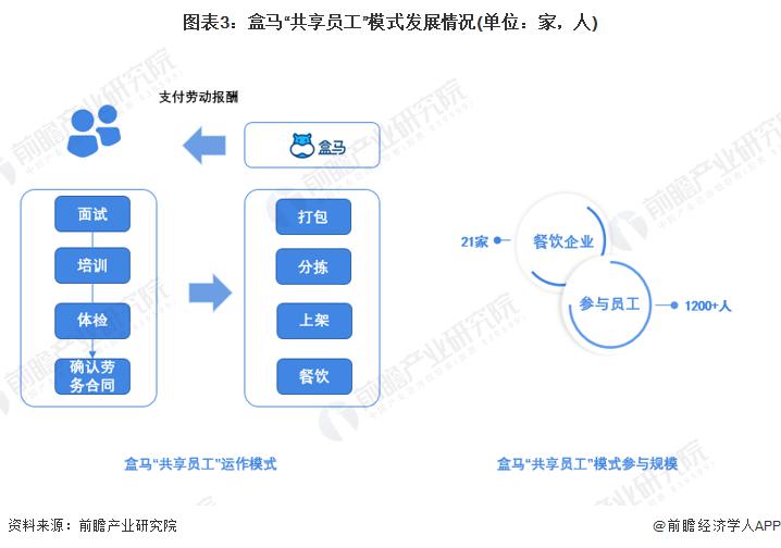 在此背景下,盒马提出了 " 共享员工 " 的模式。2020 年 2 月 3 日,盒马发布公告,受新冠肺炎疫情影响,在此期间云海肴、青年餐厅 ( 北京 ) 部分员工将经面试、培训、体检,并确认劳务合同后,入驻盒马各地门店,参与打包、分拣、上架、餐饮等工作,盒马将支付相应的劳动报酬。截至 2022 年 2 月 6 日,包括云海肴、青年餐厅、蜀大侠在内的 21 个餐饮企业 1200 余人加入盒马临时用工队伍。 ( ]/ D" I' _1 K: m# t( [