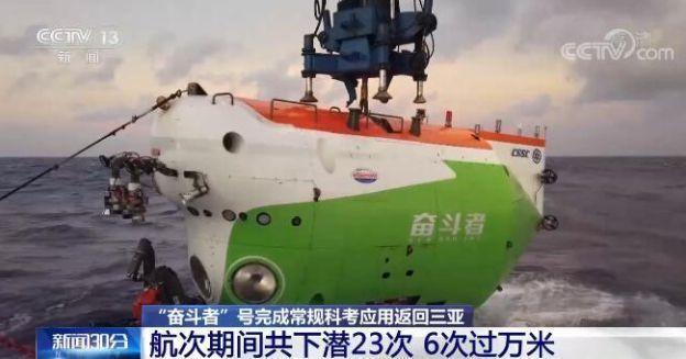 $ c4 l0 C p6 { 2020年11月10日,我国研制的奋斗者号载人潜航器到达马里亚纳海沟底部,深度10909米,成为中国载人潜艇的新纪录,也是世界上首次同时将3人带到海洋最深处。截止2021年底,斗者号已完成21次万米下潜,已有27位科学家通过奋斗者号载人潜水器到达过全球海洋最深处。我国目前在深海潜航领域的成绩处于世界首位。