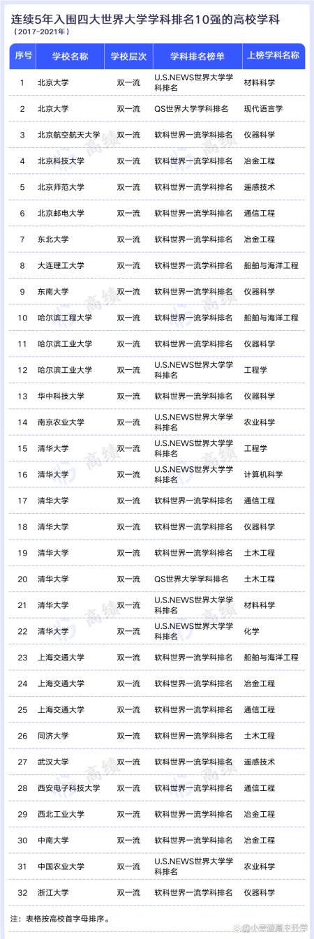 1 V) `, f2 x6 S* j9 O8 X 在深入推进新一轮“双一流”高校的进程中,学科建设是关键着力点。5年的时间,一批曾经强劲的学科可能消失或跌出顶峰,也有一批新的高校携黑马学科强势入局,大浪淘沙过后,有21所高校的31个学科逆势而上,实力和底气都在,连续5年蝉联四大世界大学学科排名10强,且清一色为“双一流”高校。