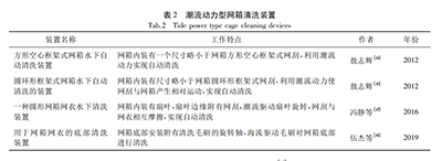 3 n, ~& D% o+ n) m1 _; F4 a常见潮流动力型网箱清洗装置如表2所示。