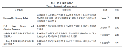 7 j7 F K; Y$ D常见水下网箱清洗机器人见表5。, `8 H% X" n5 w! j, R