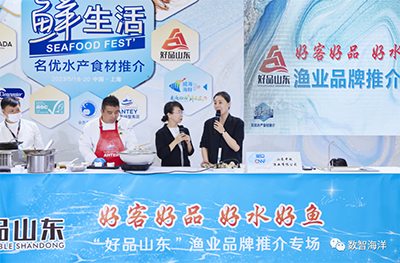 举办“好品山东”渔业品牌推介专场的“鲜生活”活动区
