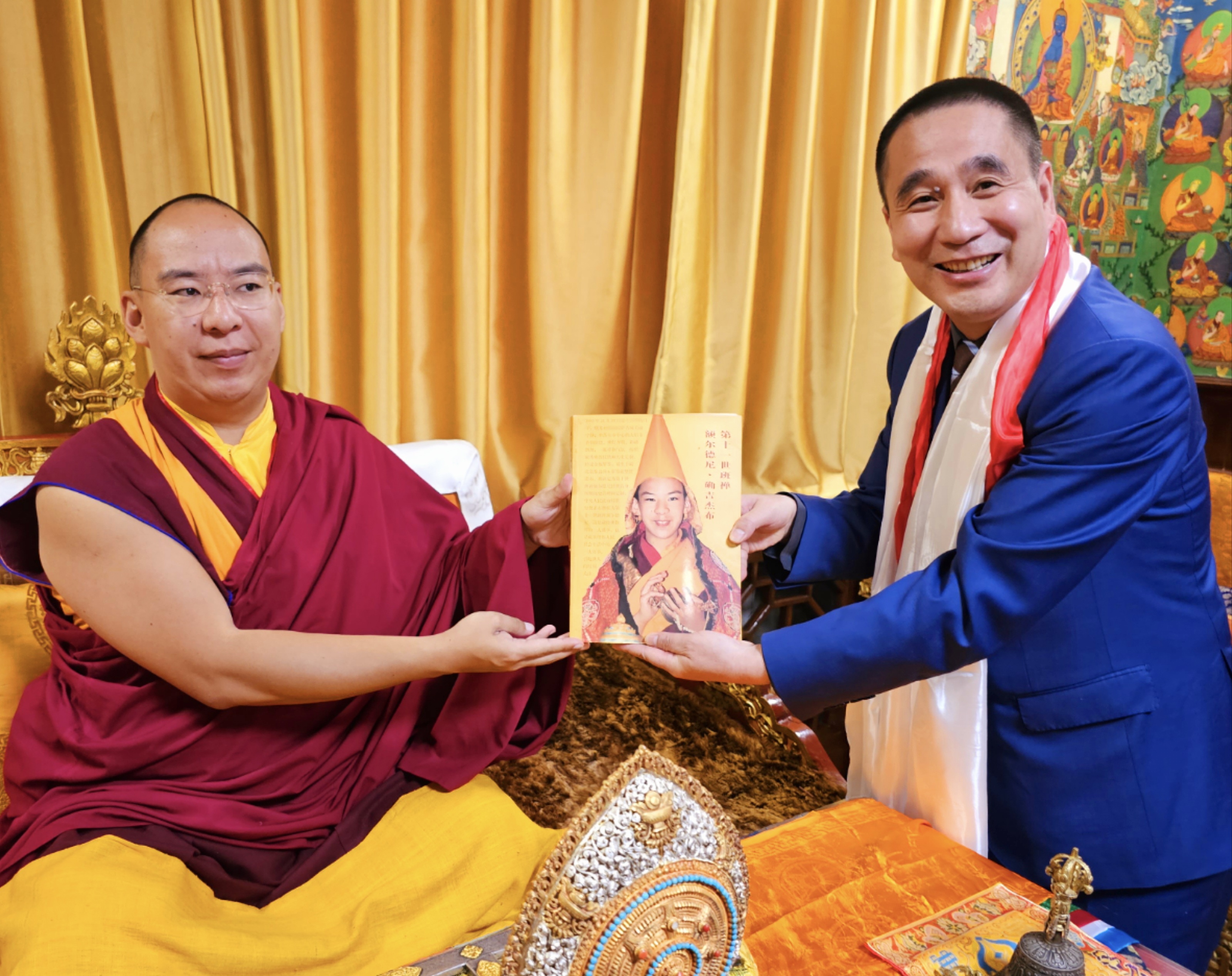 噶尔哇会长向华国中主席敬赠护国金佛