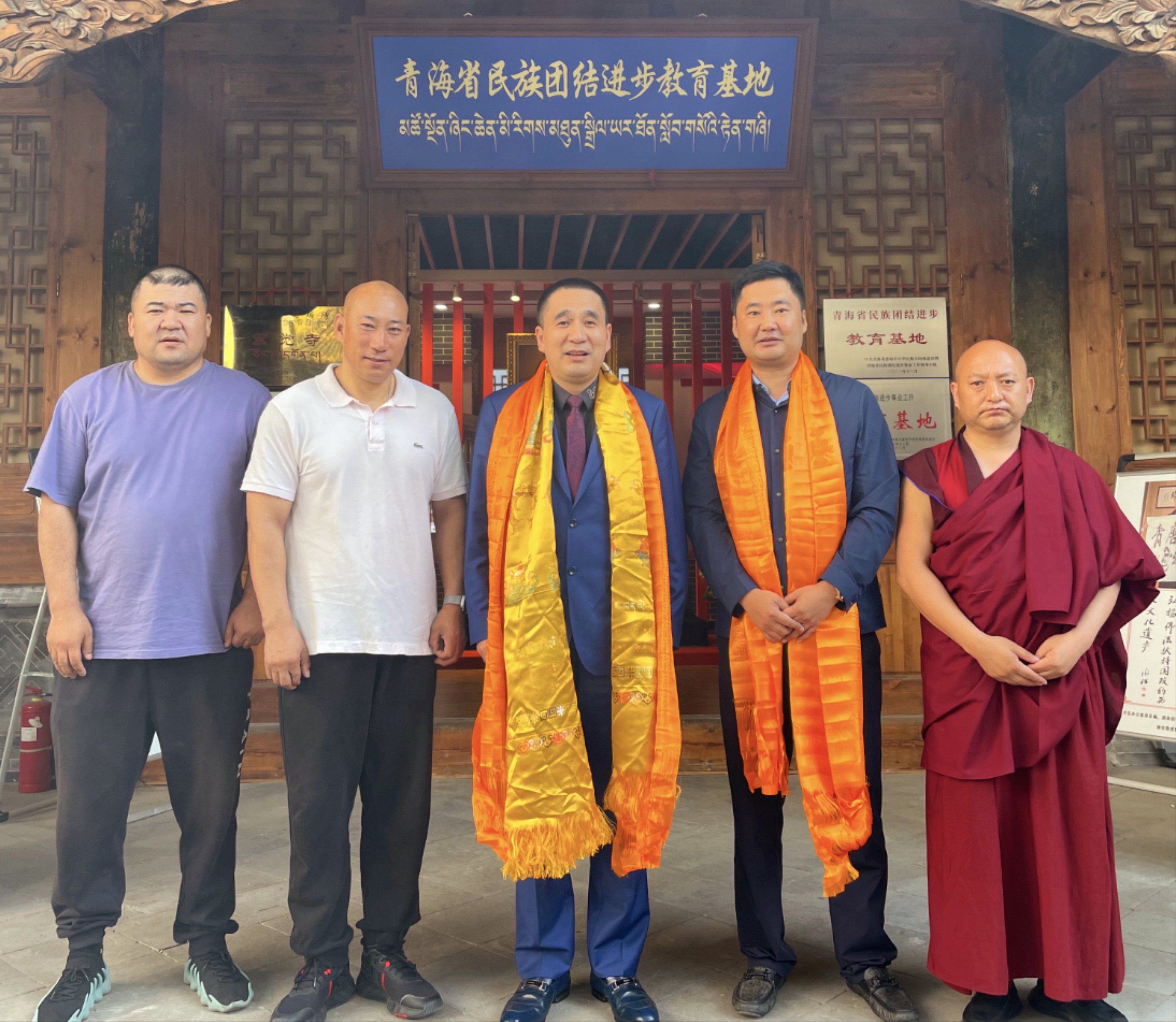 & _2 _- R9 W1 E& D9 d5 G X. i: n噶尔哇.阿旺桑波会长语重心长说:回望宏觉寺的千年历史和法脉,不难看出,它是“金色”的,更是“红色”的;不仅是一处庄严的朝佛圣地,更是爱国爱教、促进民族团结的爱国主义教育传承基地。