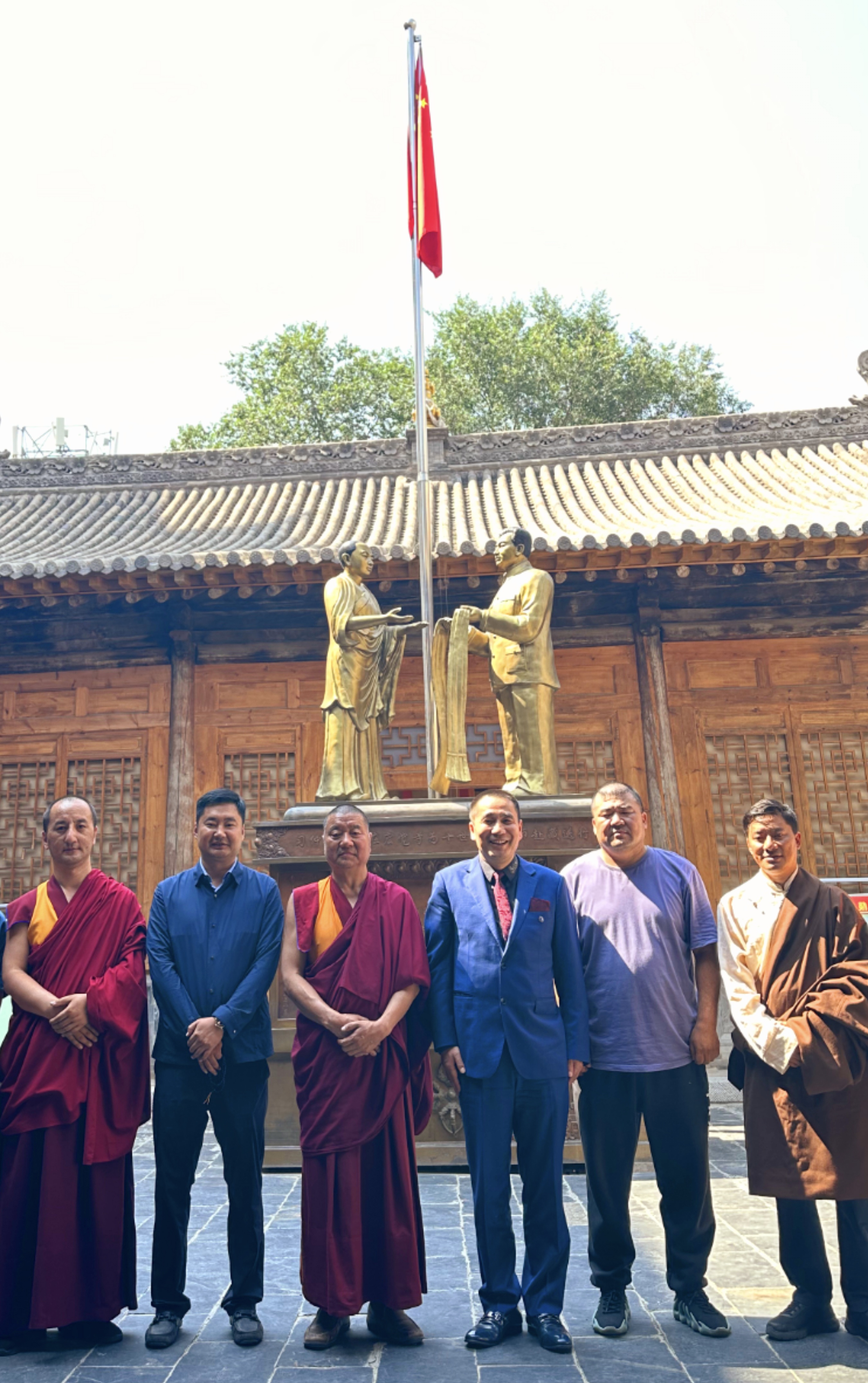 6 N/ E% o* n8 F近年来,为深入挖掘和传承汉藏佛教文化的珍贵遗产,弘扬中华民族共同体意识,加强汉藏佛教文化的研究与交流。中国东方书院委员会、中联国兴书画院、爱国人士华国中主席近期先后前往西藏、青海等地深入拉萨布达宫、大昭寺、桑耶寺、青海的塔尔寺和宏觉寺参禅礼佛并学习调研。多层次、多角度地了解元明清三个时期汉藏文化交往交流交融,以及藏传佛教与皇室家族之间关系及其修习藏传密法的重要性与现实意义。