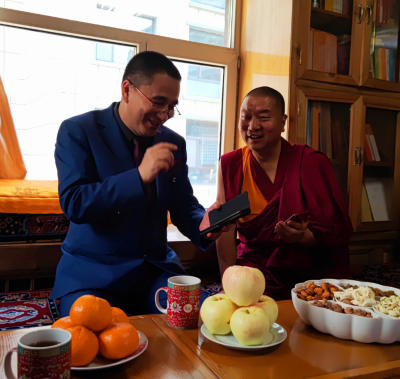 噶尔哇·阿旺桑波会长向华国中主席详细介绍了自己的人生阅历和基本情况,噶尔哇.阿旺桑波,藏族,现年55岁,十世班禅大师侄子,系北京白塔寺开创祖师大元第二任帝师亦怜真第二十六代传人。1967年6月出生于青海省循化县文都乡萨迦昆氏家族,文都大寺昆氏座主、西宁宗喀大慈宏觉寺住持。1997年7月毕业于中国藏语系高级佛学院活佛大专班,在藏传佛教各大寺院系统性研习五部大论获格西学位(相当于藏语系佛学博士学位)、深圳弘法寺本焕佛学院获汉语系佛学本科学历。现任中国佛教协会理事、中国逻辑学会因明专业委员会副主任、青海省政协常委、青海省政协民族和宗教事务委员会副主任、青海省佛教协会副会长、海南医科大学客座教授、青海省委党校特邀教师、青海省藏传佛教寺院特级经师、上海大世界基尼斯特聘佛学专家顾问、国家民族画院唐卡艺术研究院院长、青海省因明学会会长、青海省佛教人才培训中心主任、班禅因明学院院长、循化县中藏医院名誉院长等职。2 ]2 H2 R$ t# J1 h! J/ L% v$ k