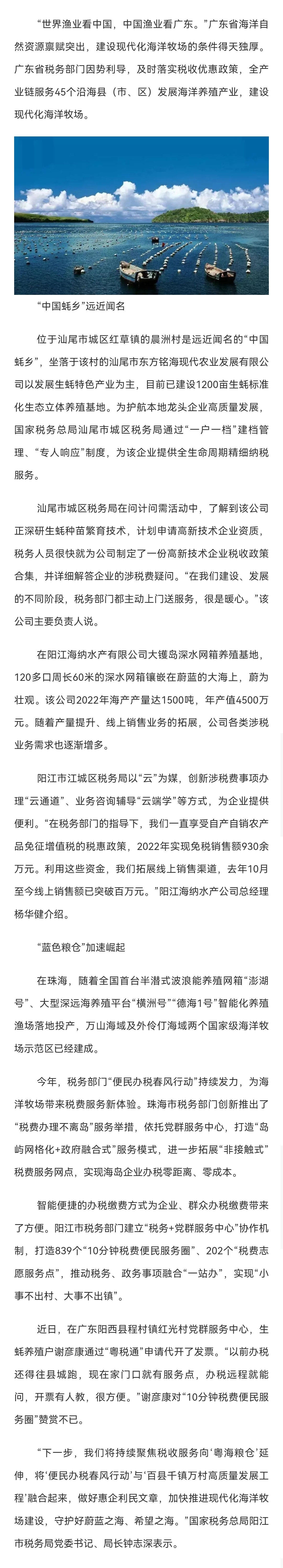 中国税务报丨广东:海洋牧场 蚝肥鱼丰