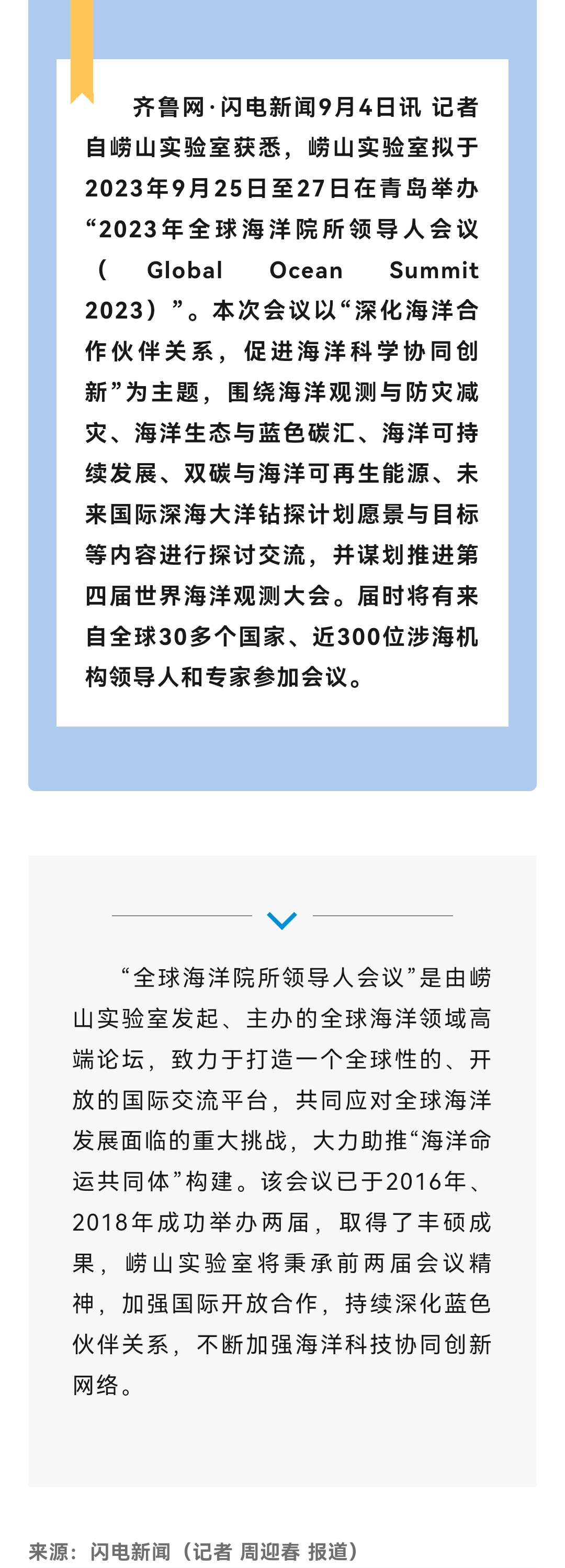 2023年全球海洋院所领导人会议拟于9月25日在青岛召开 ...