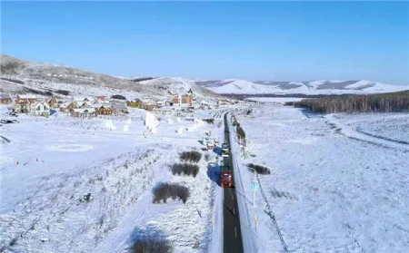 在美丽的林海雪原--呼伦贝尔牙克石,搭载潍柴氢燃料电池的重卡驰骋冰雪世界。