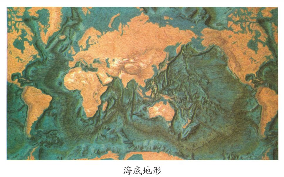 海底的巨大山脉大洋中脊是地球上最长、最宽的环球性的海底山系。这种地形约占海洋总面积的33%,在各大洋底部几乎都有分布。大西洋中脊是最雄伟的海底山脊,贯穿大西洋底呈“S”形;印度洋的洋中脊形式独特,分为3支,呈“Y”形。