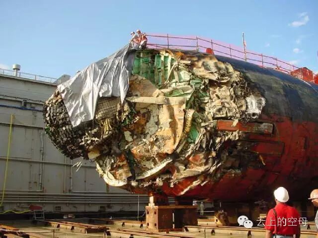 + X. b8 O3 w3 ?( L 抵达关岛之后,旧金山号核潜艇被拖入关岛的干船坞进行维修,重新安装了艇首。