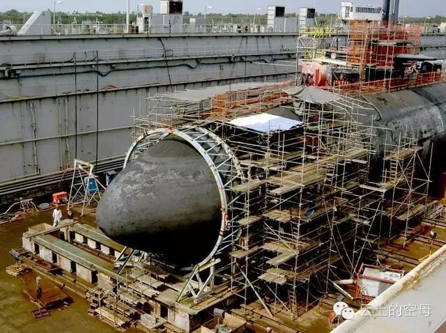 正在出港的旧金山号攻击型核潜艇。二战期间,美国海军曾经有多艘舰艇的舰首被打掉和撞坏,均是在安装临时舰首,然后到本土进行大规模的维修。