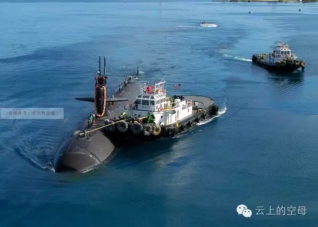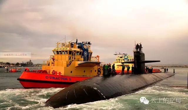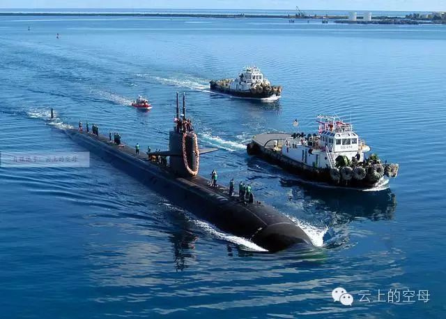 " H1 B; C% q3 l0 T 由拖船牵引并归港的旧金山攻击型核潜艇。2005年的时候,该艇在关岛西南侧的海域同海底山脉相撞,事故造成艇体前半部分严重受损。根据海军的时候调查发现,旧金山号的艇长和其他几位艇上人员对此次事故是负有责任的。 ) E- g* m% ~) K4 B( Y5 u