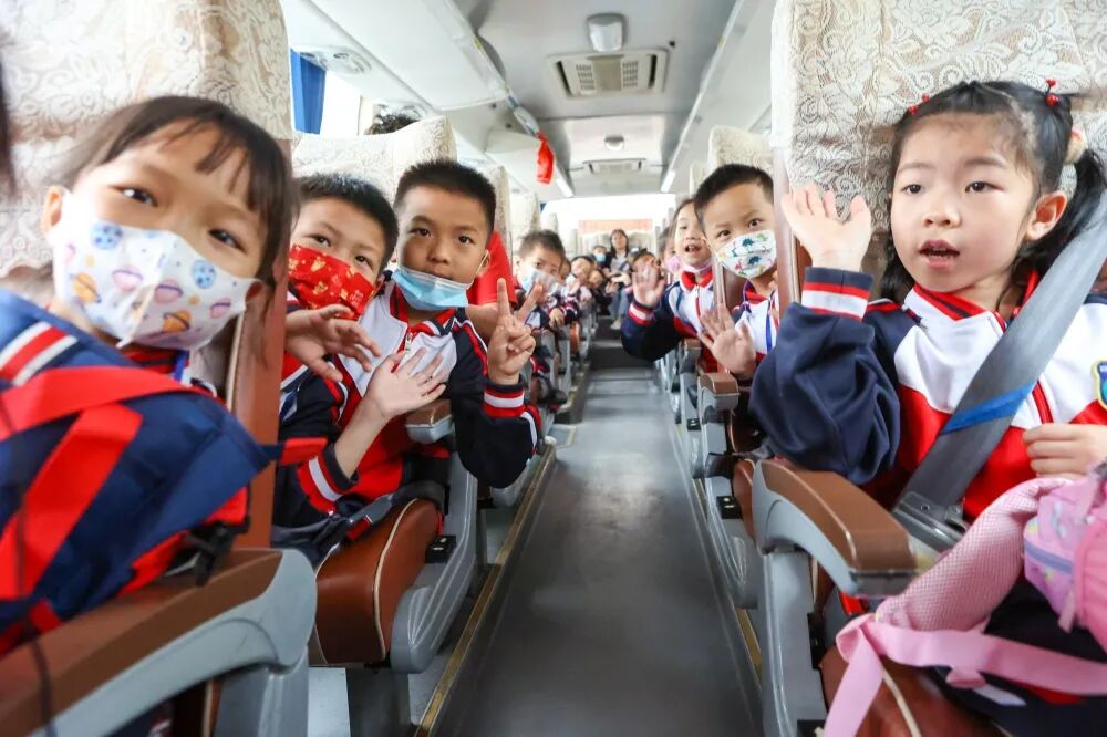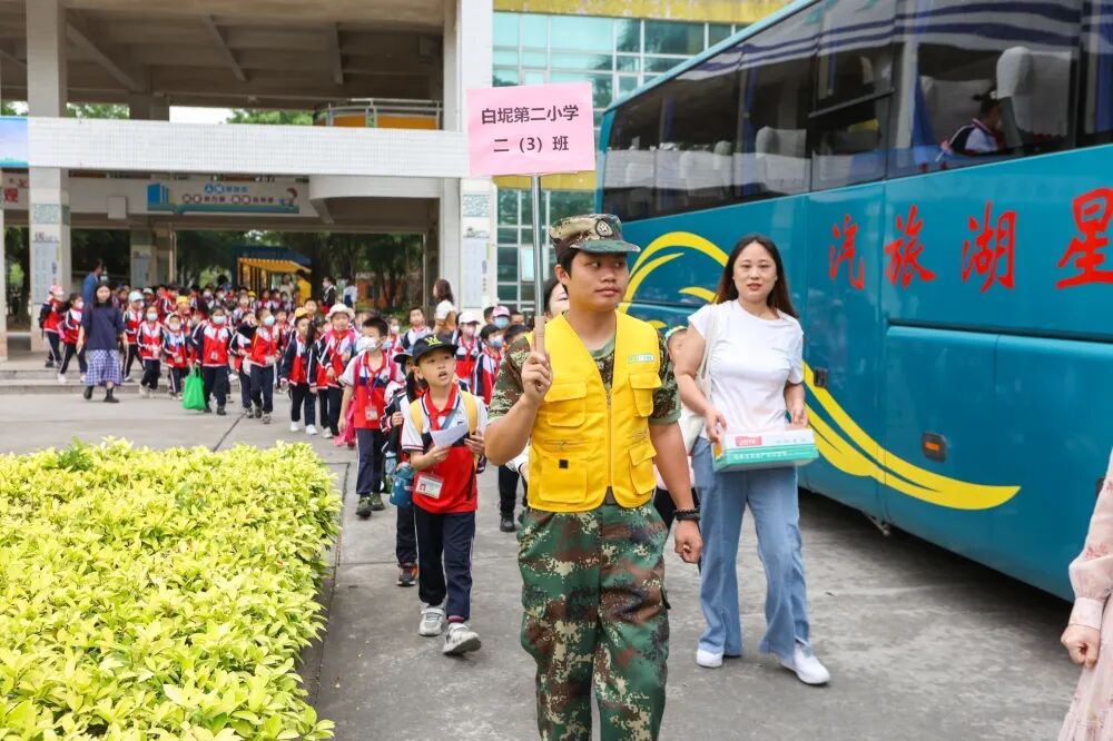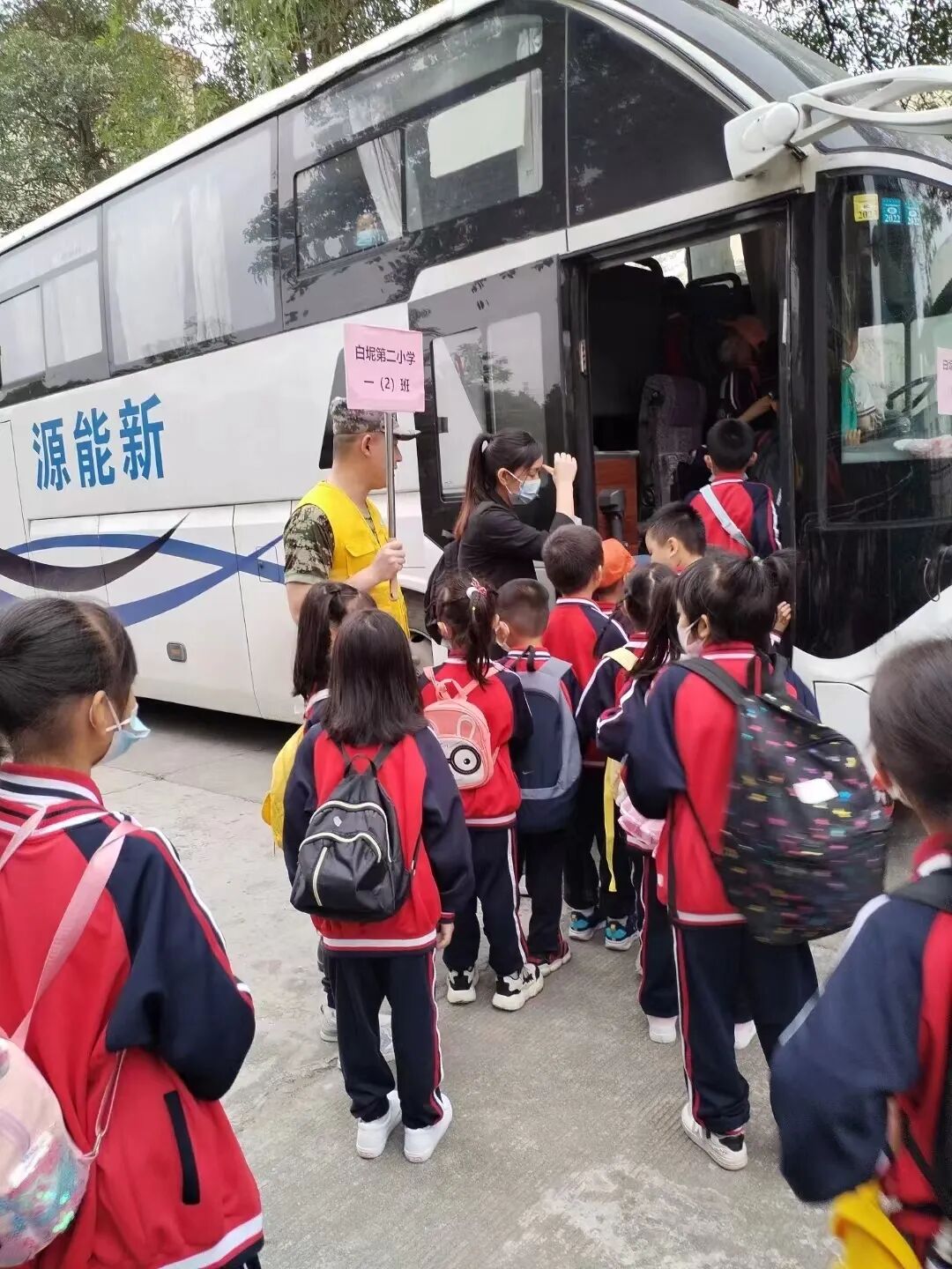 2 S8 p$ P, ?$ P- S" ] 上午,孩子们背着小书包,带着好奇心,兴致勃勃地踏上研学之旅。一路上欢声笑语,到达目的地后,孩子们在导游的带领下有序入园。 ) ?% P3 o2 w# G+ y9 v