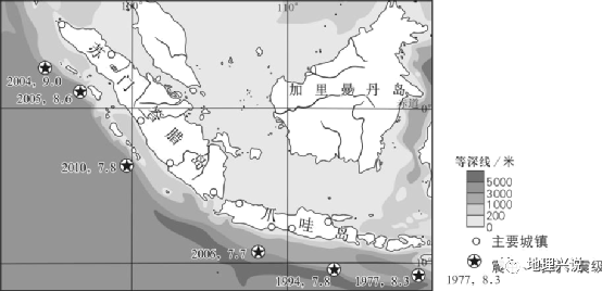 (3)解释苏门答腊岛—爪哇岛西侧及南侧沿海地区在当地历次海啸发生时损失较大的原因。 + X t& c4 }5 I4 r