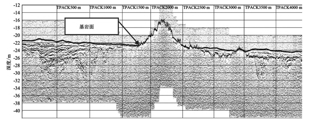 图5 基岩出露典型剖面图像(测线A-QP-Z11) 7 X$ ~" t: i/ W/ t6 r% m3 ]' J7 u