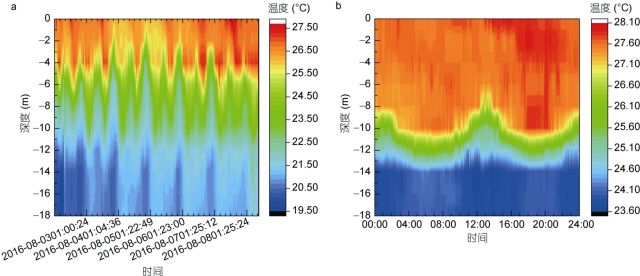 注:a为整个温度链的温度变化,b为海底温度变化趋势 # l* T! |0 a8 S6 r' t