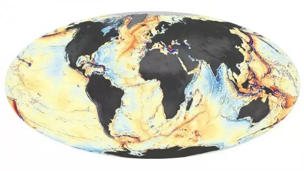 导语看多了陆地上的各种地图,你有想到过为海底做一幅地图会是什么样子的吗?一起来看悉尼大学的研究人员绘制的地球重力场地图,看一下海底的构造吧。