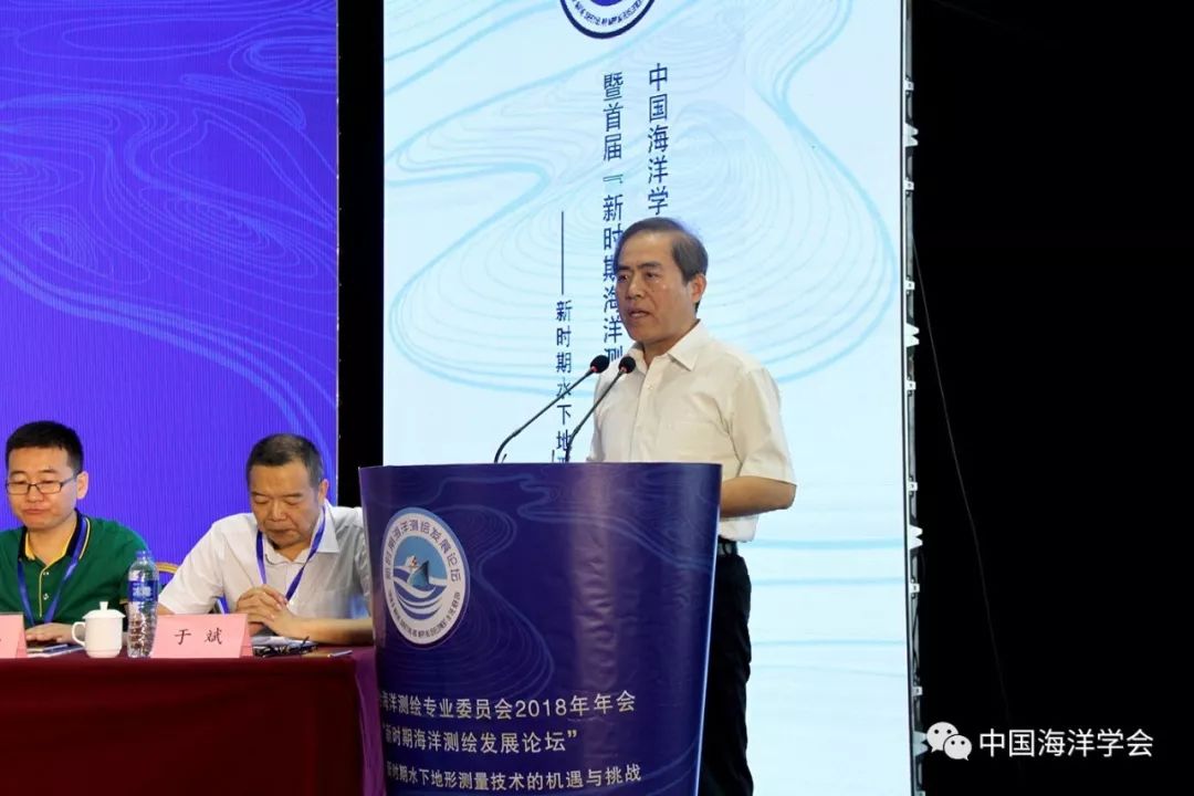 陈连增理事长在致辞中指出,党的十九大报告明确指出:“坚持陆海统筹,加快建设海洋强国。”在这一大背景下,国家和地方对海洋测绘的服务保障能力提出了更高的要求,不论是海域海岛开发,以及经济带、经济圈和湾区建设,还是国家海洋战略的顶层设计,都离不开海洋测绘这个“绘制蓝图”的基础支撑。在2018年政府工作报告中,国家明确要实施重点流域和海域综合治理、严控填海造地、壮大海洋经济、坚决维护国家海洋权益、建设强大稳固的现代边海空防等重点方向,这将是我们海洋测绘工作的着眼点和着力点。我们正处在可以大有作为,也能够大有作为的黄金机遇期。 $ L5 B4 j3 q8 W% \/ M