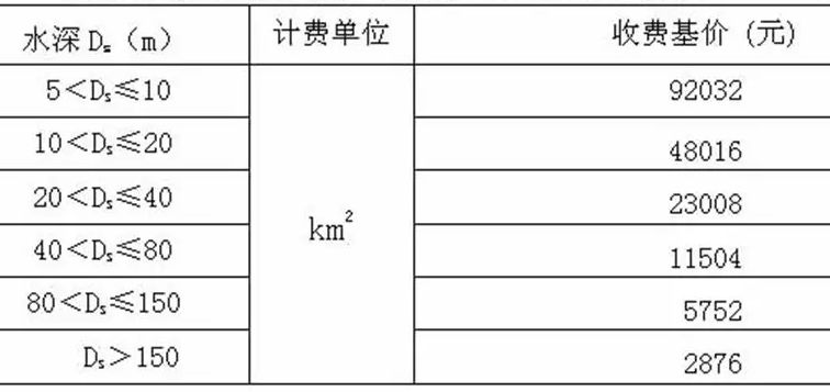 在计量单位上,《工程勘察收费标准》更加与国际计量标准相符合。比如在“水域测量”一节里,江河湖塘及沼泽区和积水区按平方公里计量,河道断面按测线量程计量;另外对滨海区在江河湖塘等测量的基础上,增加了1.5的附加调整系数,这是考虑了海洋工作中会因风浪、流等因素影响作业率,因此增加了1.5倍的费用。多波束海底地形测量则采用面积计量,不同水深区域计费价格不同,是依据水深情况做收费类别依据,因为水深越深则多波束覆盖宽度越大,意味着深水区工作量就减少了,因此收费低。而海底面状况扫侧、浅地层剖面测量、海洋磁力测量等则采用测线里程计量,因为海底面状况扫侧等的工作量与技术要求有关,也与海底的水深有关,目的在于进行全覆盖探测,因此如何选择探测量程档就与设备本身有关,基础是作业单位得有技术设计,报价里必须说明测线里程,及如何计算。而底质取样、水文测验等就按站位来计量,也是符合实际项目作业的特点与需求。