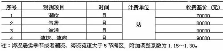 注:1.海况分级见《海滨观测规范》;2.本表同时具备两项及以上因素的,按照最高类别计算收费。 % I0 r( R, F; ^3 N. ]' u% K8 ?. Y; [