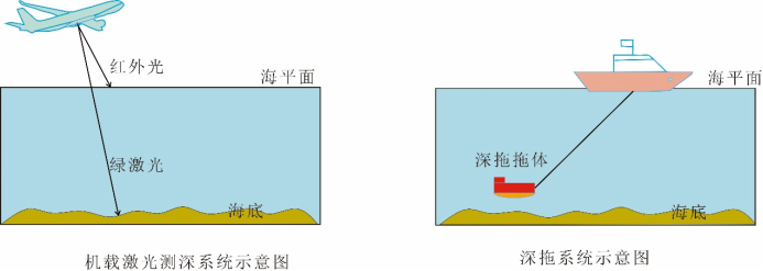 6 V" y8 |8 o+ P6 w! Y 近年来又出现了机载激光测深系统,通过飞机向下发射红外、绿激光,红外光因无法穿透海水而被海面反射,而绿激光穿透海面到达海底被反射,通过检测海表和海底回波实现测深,同多波束测深技术一样,可以实现全覆盖测量,其工作效率更高,但穿透能力和测量精度受海水浊度影响较大,有些区域难以进行测量。为了提高海底地形地貌信息获取的分辨率和精度,以深拖系统为平台,携带多种测深仪器于一体的潜基海底地形地貌测量系统已经面世,并在一些水域和工程中得到了应用。 & m1 b c/ e4 u# z