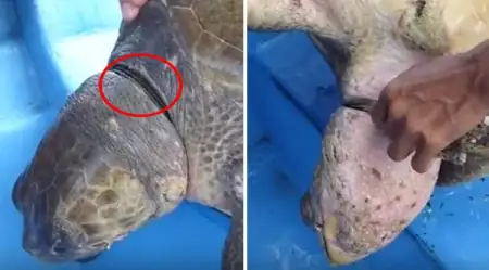 . Y7 g; R; q% H3 ?1 n- N& G1 Z 越来越多的科研机构在海洋中相继发现畸形蛙、畸形鱼类等水生生物,这是由于海水中含有大量的化学物质导致的。鱼类等水生生物的胚胎生长发育过程中胚细胞的分裂受一些物理或化学的刺激而产生不正常分裂,有可能导致成体畸形。 ) C* P" L3 D9 q