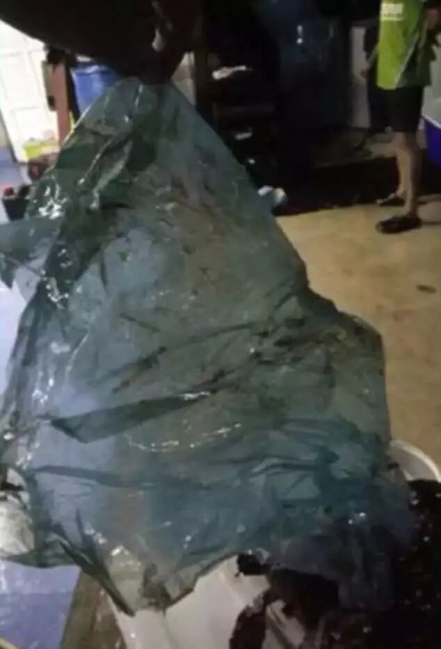 2 @; P4 M( V/ C- k 其中包含塑料袋,渔网和绳子,甚至还有一个油桶! ' k4 r9 l# ]. }; ~8 `; S8 f. s